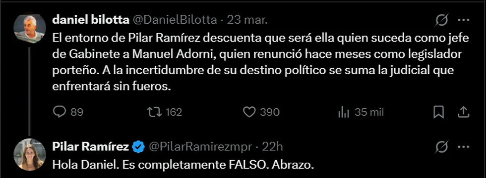 Sin embargo, la interna libertaria está lejos de cerrarse. Aunque desde la Casa Rosada descartan cambios inmediatos, en las últimas horas circularon nombres para reemplazarlo, como Martín Menem y Sandra Pettovello. A esto se sumó la desmentida pública de Pilar Ramírez, quien negó cualquier posibilidad de asumir ese rol.